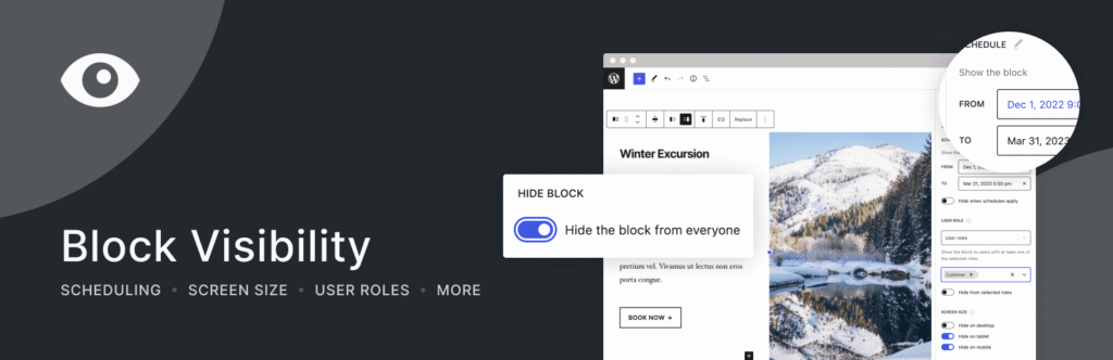 If you’ve ever wanted to show or hide content based on who’s viewing your site, Block Visibility is a must-have. It adds conditional logic to Gutenberg and you can display a block only for logged-in users, hide it on mobile, or schedule it to disappear after a date.